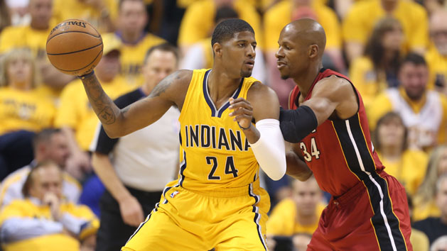 Taking advantage of their home-court advantage in the first game of the conference finals Sunday at Bankers Life Fieldhouse, George scored a team-high 24 points and handed out seven assists, leading the Pacers to a 107-96 victory over the Heat.